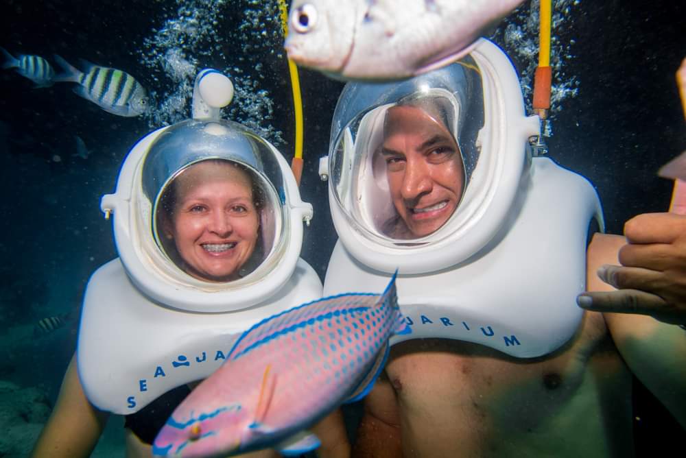 Caminhe no fundo do mar e descubra um mundo encantado, entre peixes, corais e sorrisos que dançam nas águas do Caribe. Toque arraias, admire tubarões...